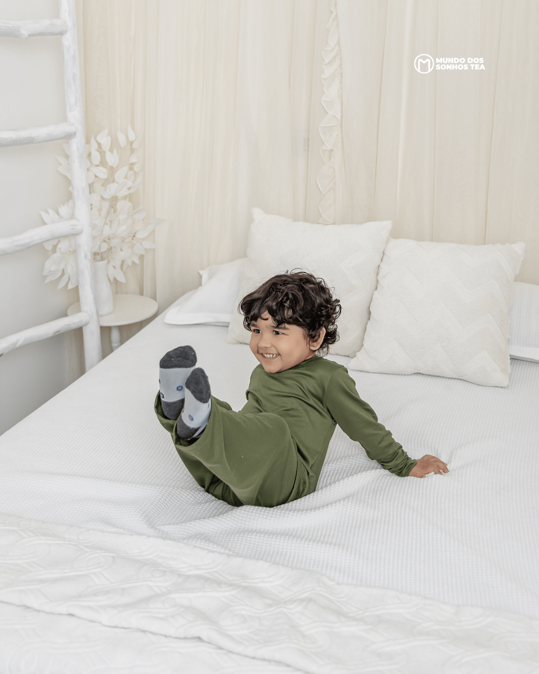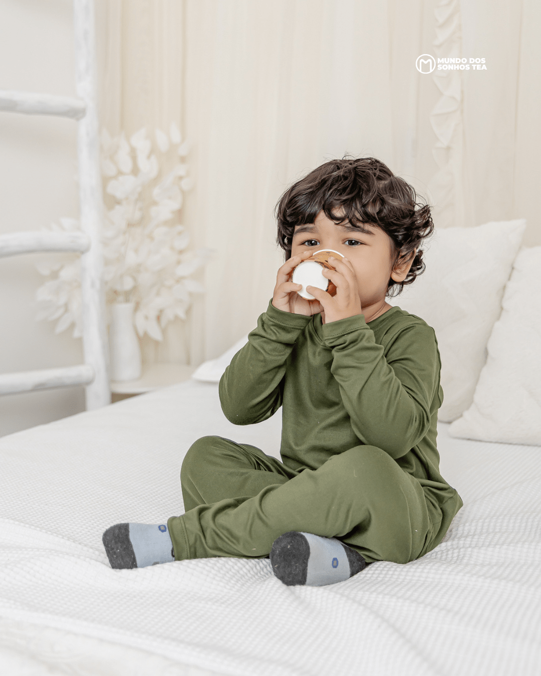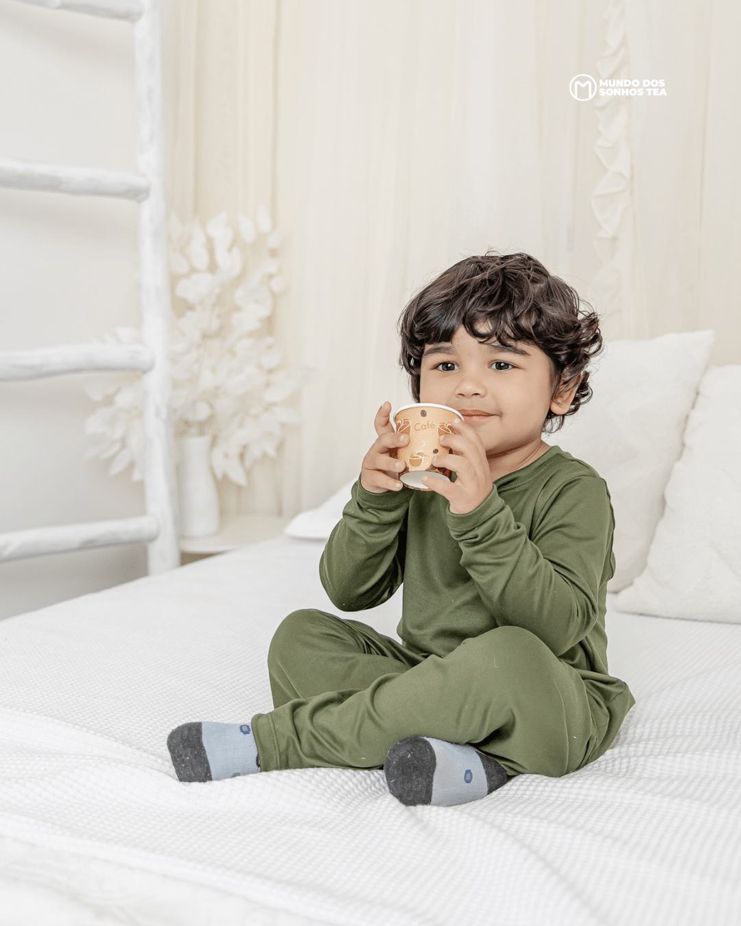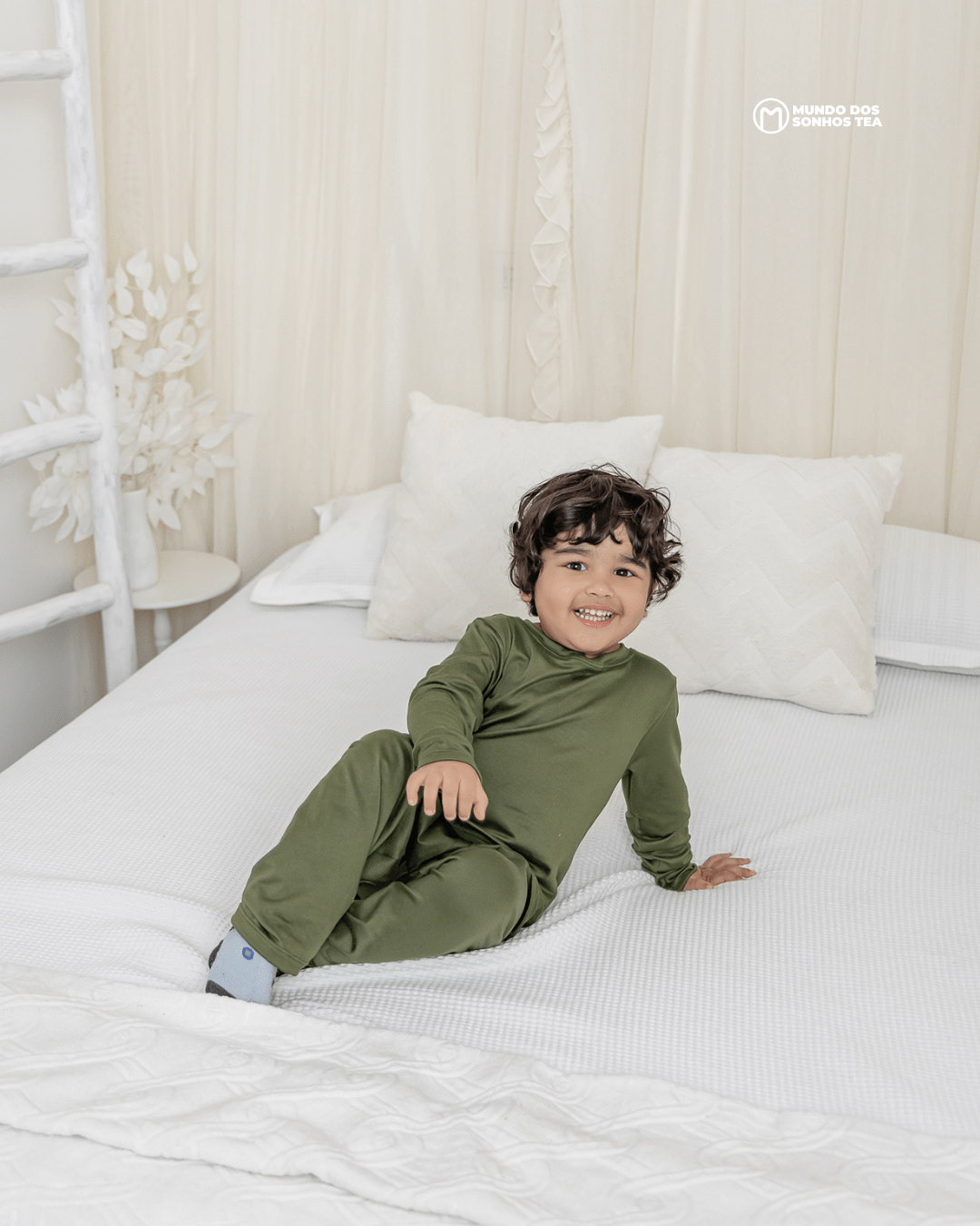 Conjunto sensorial longo com blusa manga longa e calça em modal premium. Cor verde militar, pensado para o conforto das crianças autistas. 🌿